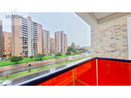 El apartamento cuenta con una distribución funcional que incluye estudio independiente, sala de estar, cocina integral y una zona social con pisos laminados, 3 habitaciones, 3 baños, dos balcones y parqueadero privado cubierto.
